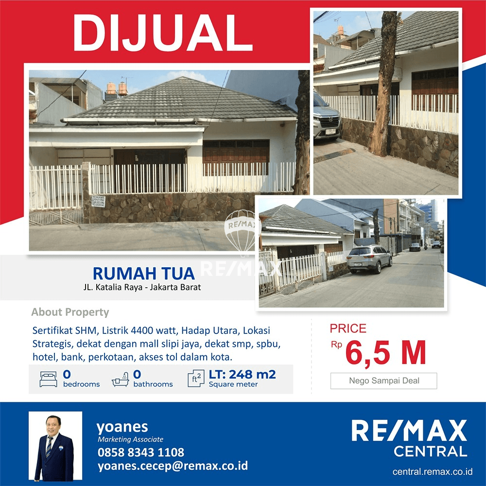 Dijual Rumah tua hitung tanah di Jl Katalia Raya luas 248 m2 Tomang Jakarta Barat