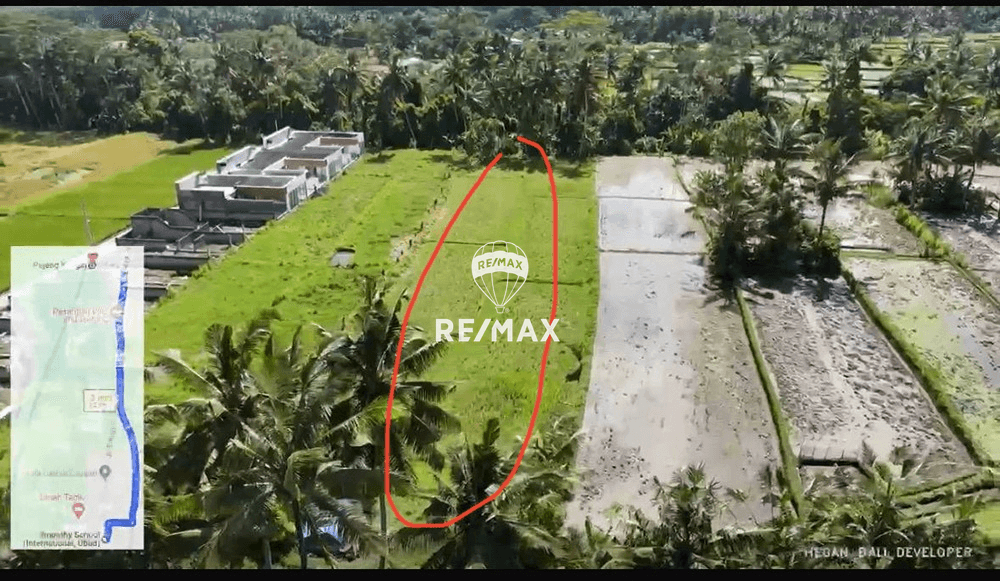 A plot of 3,130 sqm available for rent, located in Pejeng Kangin, Tampaksiring, near an international school. Rental period of 30 years. For more information, please contact: