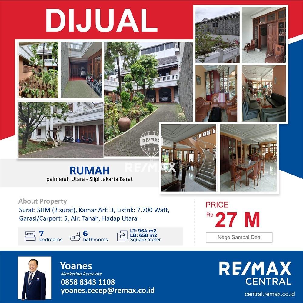 Dijual Rumah 2 lantai di Palmerah Utara luas 964 m2 Slipi Jakarta Barat
